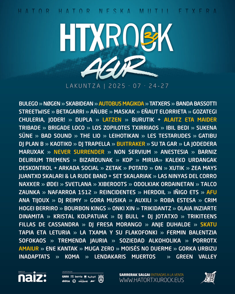 Hatortxu rock Lakuntzan izango diren 3 egunez uztaileko super kontzertuak jakingo ditugu eta Hatortxu rockari agurra emango diogu, umore eta giro onean Tuli tuli eta Albina Stardust eta Yogurinha Borovarekin ibiliko gara, beraz zeren zain zaude, ezin duzue galdu, gaozen!
